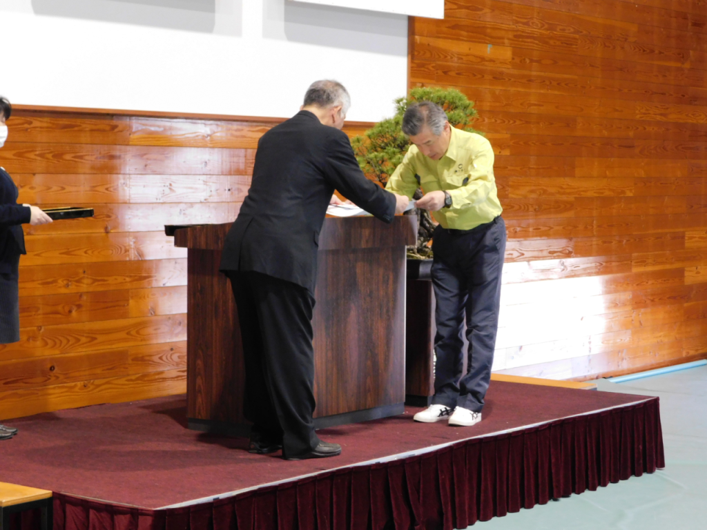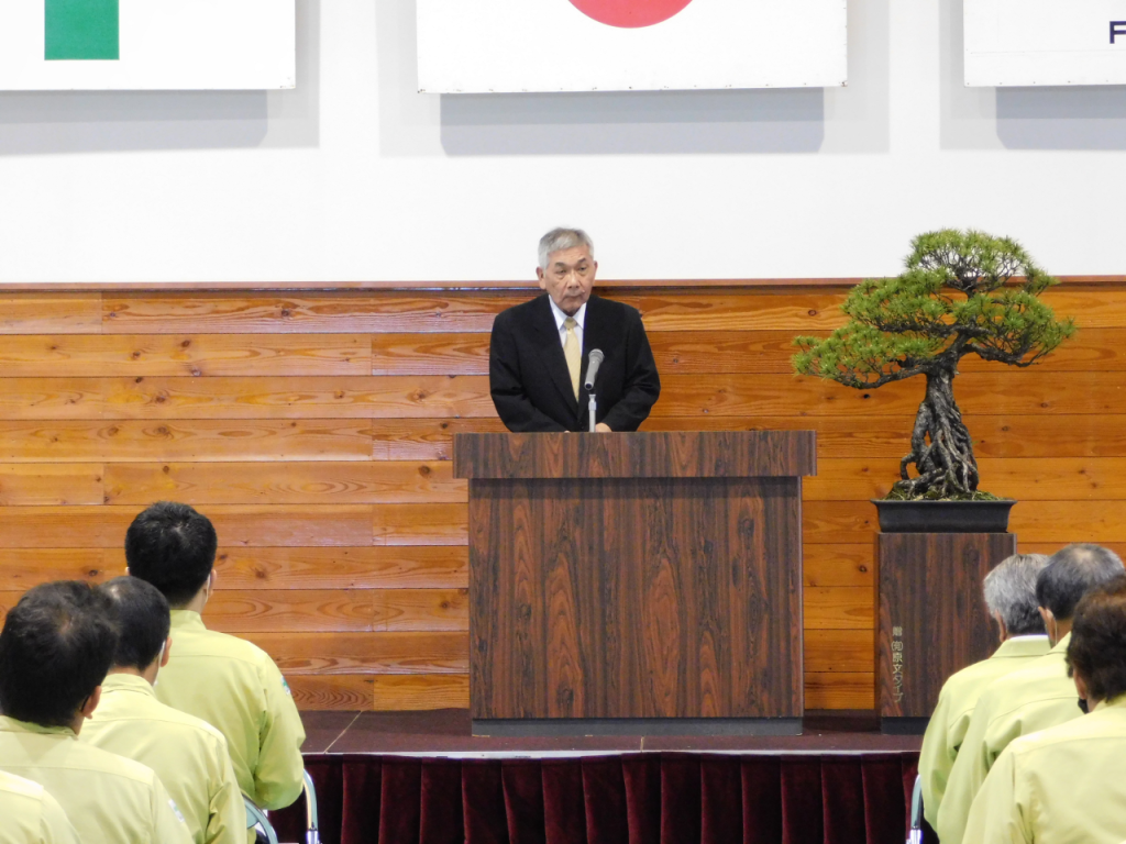 本年の永年勤続社員表彰者は16名で代表者に社長から感謝状が授与されました。その後は、社長挨拶、経営企画部長並びに工事本部長が活動方針を発表しました。