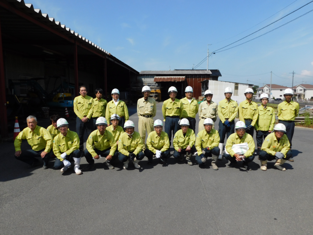 斐川町内には26ヶ所の揚水機場があり、大部分は地元で設置されている各用水協議会で管理されています。その維持管理について土地改良区と話し合いをした結果、当社ボランティア活動の一環として、黒目新田揚水機場の草刈りを行うこととしたものです。