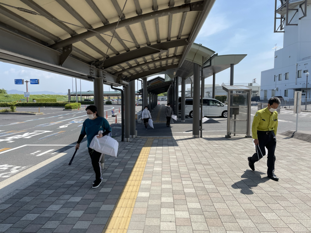 出雲空港ターミナル周辺の歩道(通路)ゴミ拾い