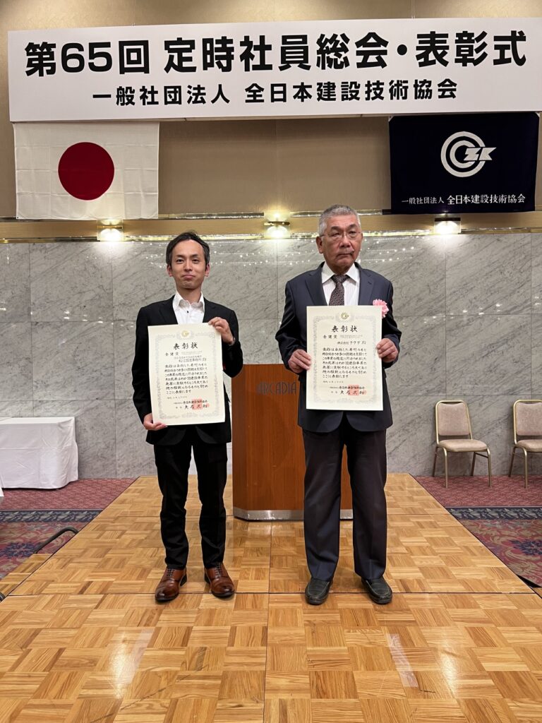 全日本建設技術協会から表彰状を頂きました。