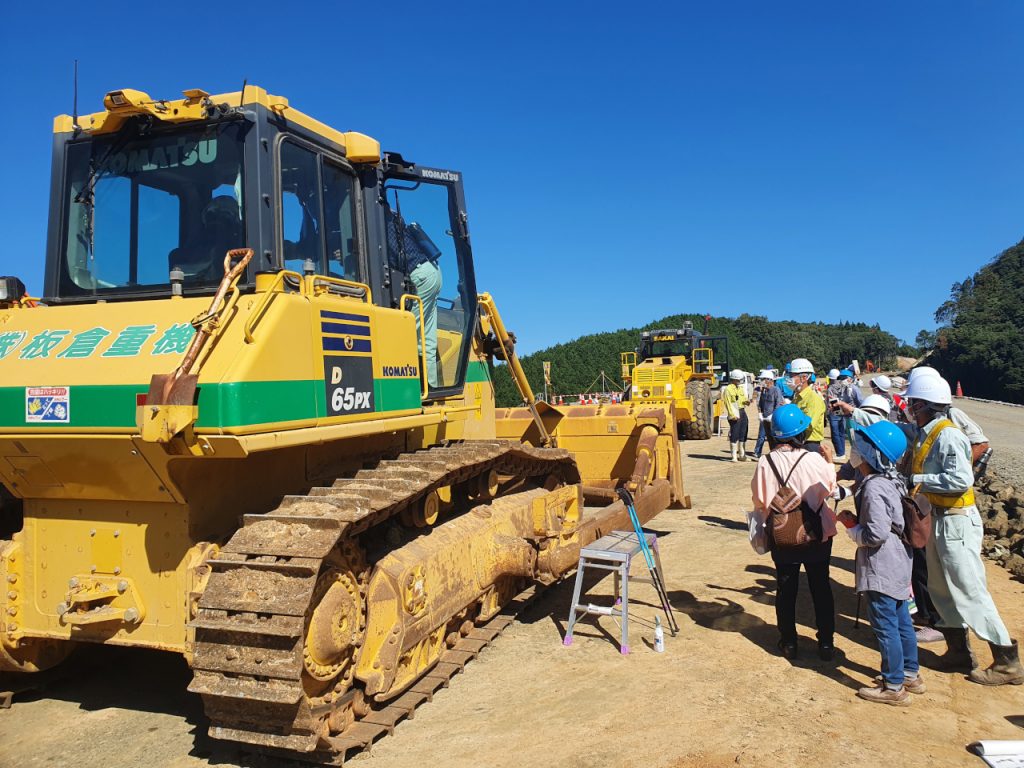 令和3年10月15日(金)、弊社施工中の令和2年度静間仁摩道路宅野地区第6改良工事にて、地元の方々35名をお招きして現場見学会を開催しました。