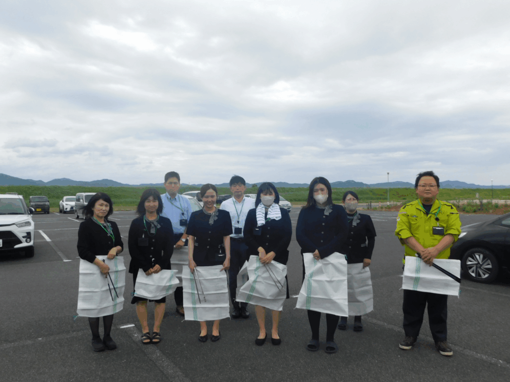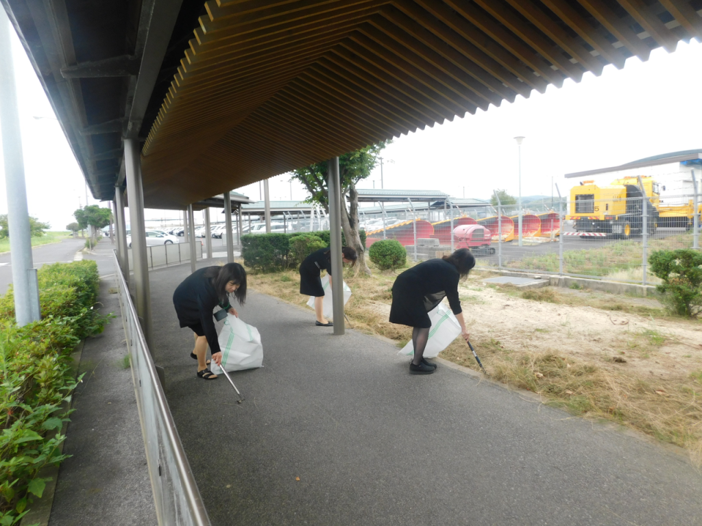 「ハートフルしまね」(島根県公共土木施設ボランティア)の一環として出雲空港ターミナル周辺の歩道ゴミ拾いを行いました。
