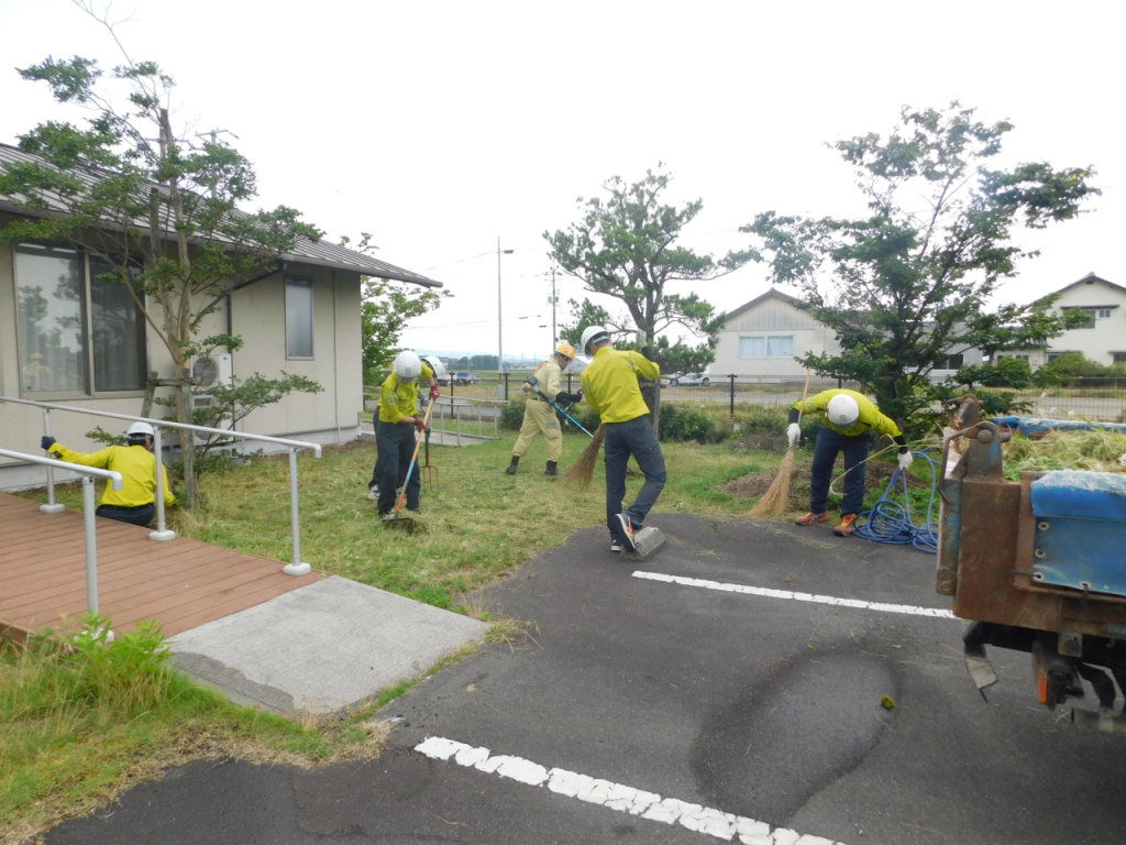今回のボランティア活動に併せて、以前施工させていただいた社会福祉法人グループホーム出東ララ様等の草刈りを行いました。