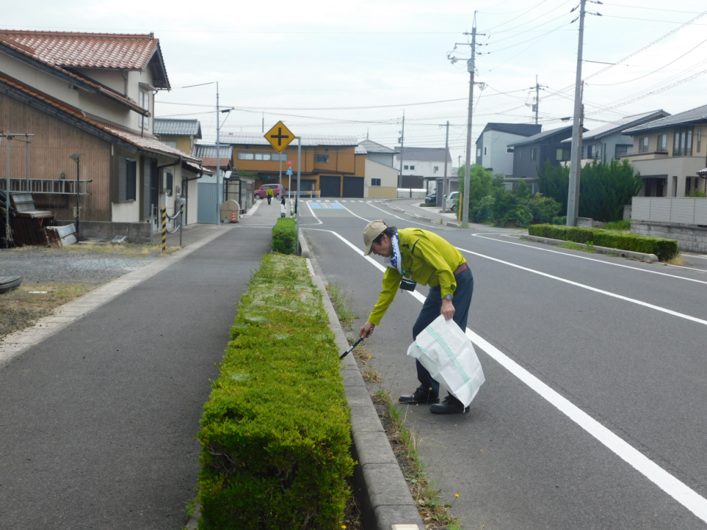 また、「出雲市美化サポートクラブ」の一環として市道新川中央線(国道9号~美幸町交差点)の路肩ゴミ拾いを行いました