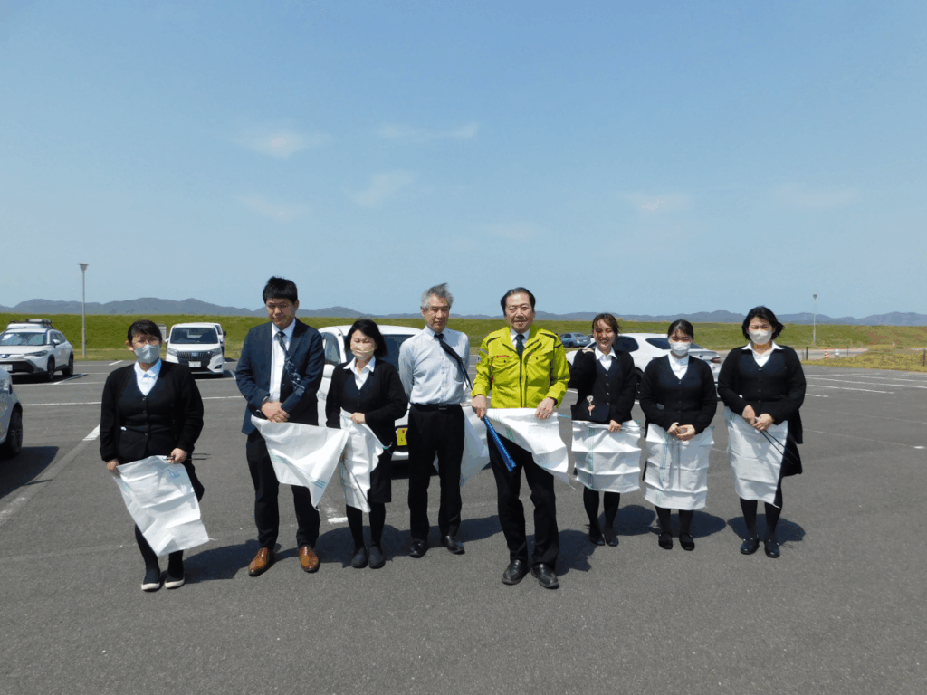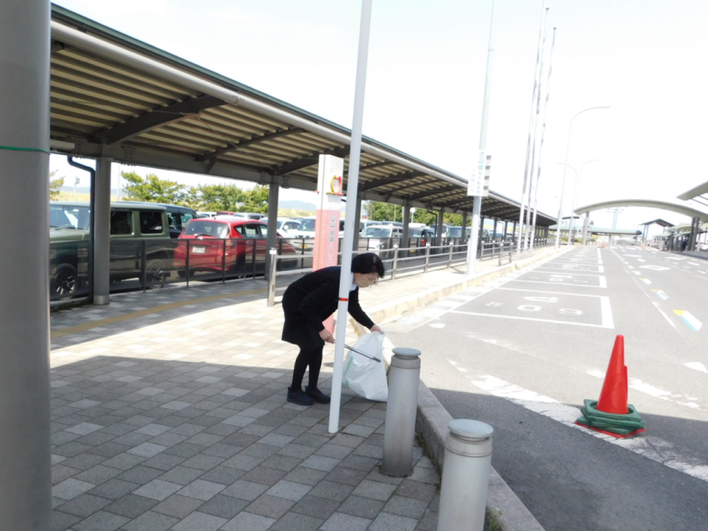 「ハートフルしまね」(島根県公共土木施設ボランティア)の一環として出雲空港ターミナル周辺の歩道ゴミ拾いを行いました。