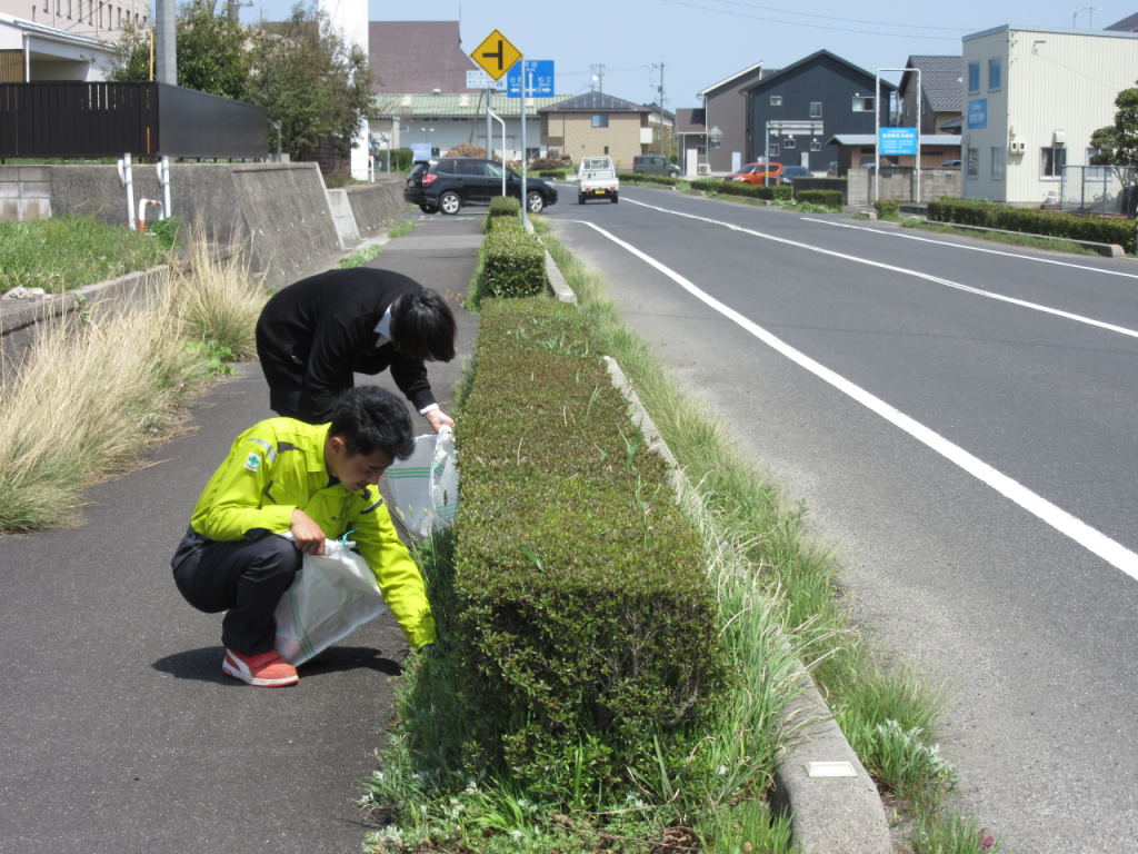 併せて「出雲市美化サポートクラブ」の一環として市道新川中央線(国道9号~美幸町交差点)の路肩ゴミ拾いを行いました。