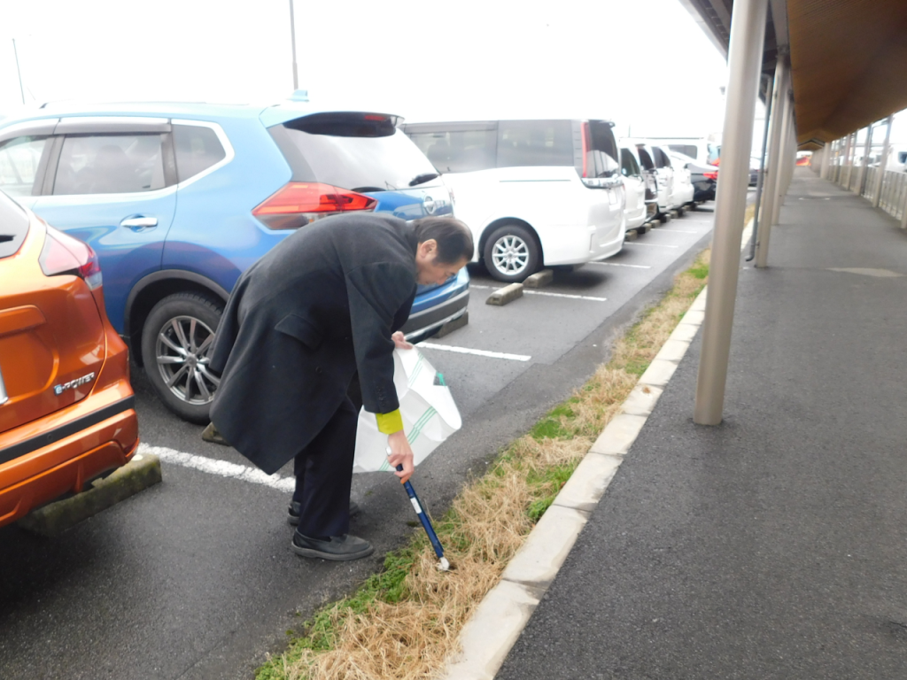 出雲空港ターミナル周辺の歩道(通路)ゴミ拾い