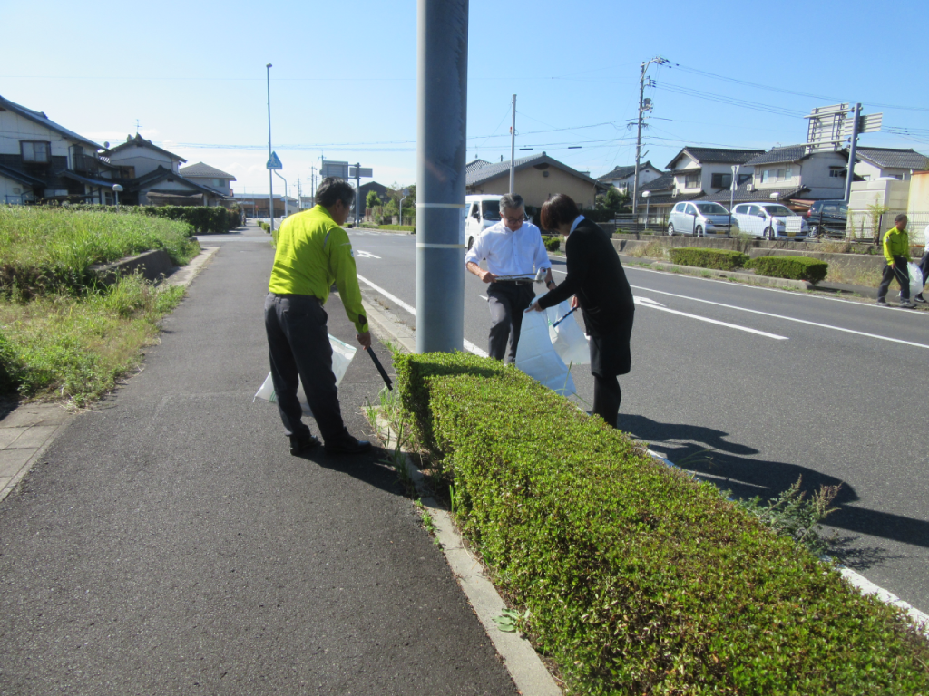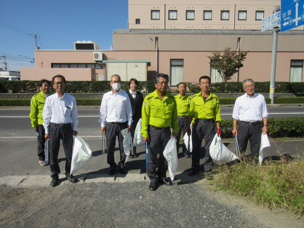 併せて「出雲市美化サポートクラブ」の一環として市道新川中央線(国道9号~美幸町交差点)の路肩ゴミ拾いを行いました。