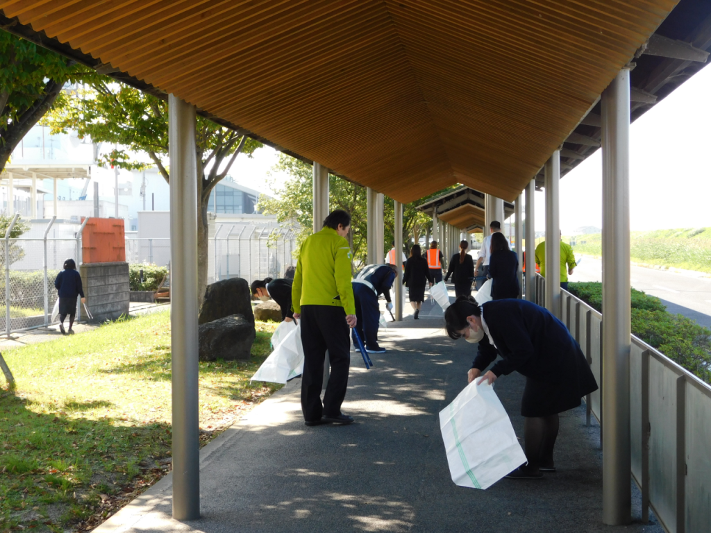 「ハートフルしまね」(島根県公共土木施設ボランティア)の一環として出雲空港ターミナル周辺の歩道ゴミ拾いを行いました。