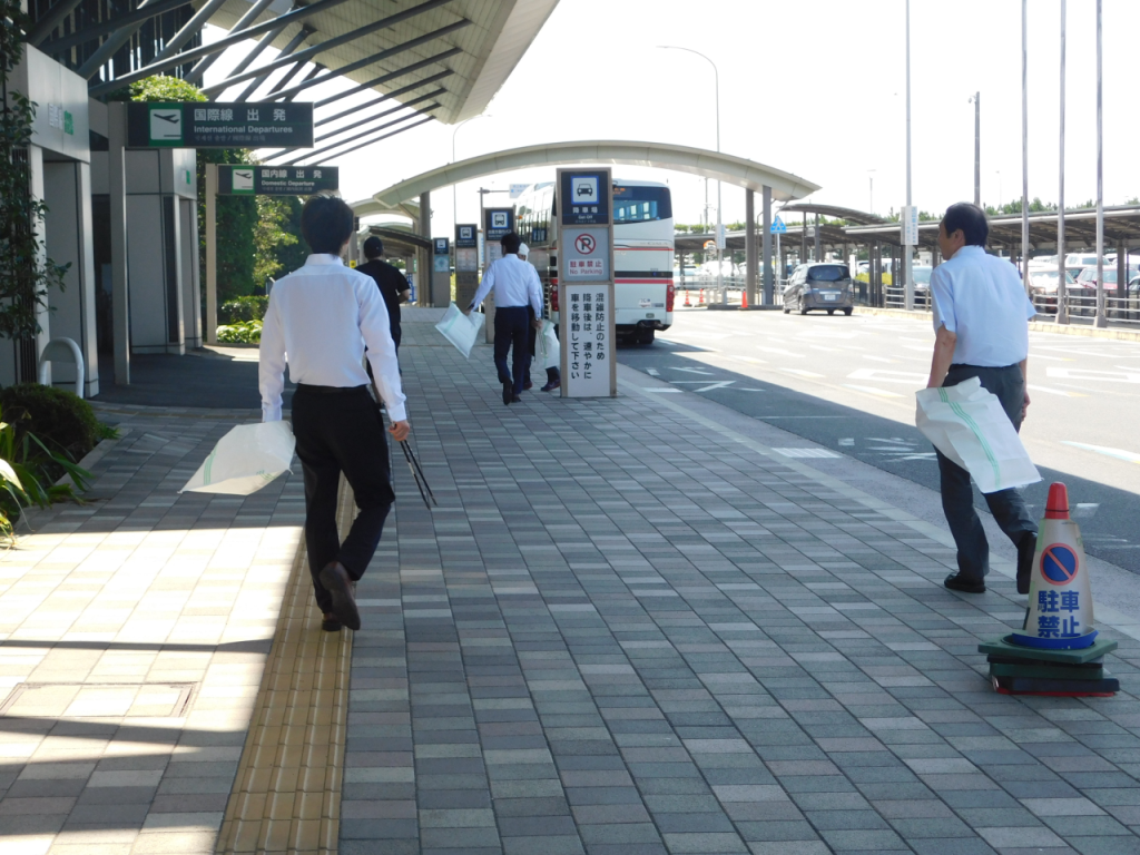 出雲空港ターミナル周辺の歩道(通路)ゴミ拾い