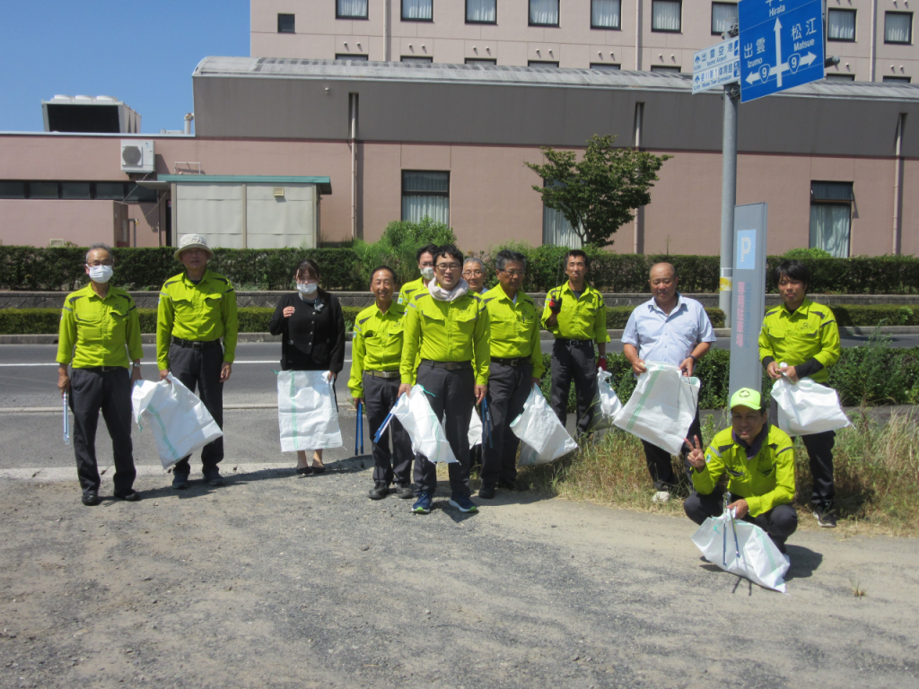 併せて「出雲市美化サポートクラブ」の一環として市道新川中央線(国道9号~美幸町交差点)の路肩ゴミ拾いを行いました。
