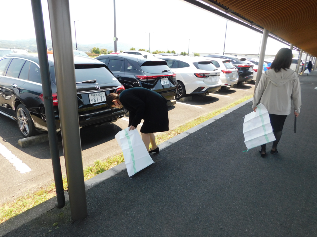 「ハートフルしまね」(島根県公共土木施設ボランティア)の一環として出雲空港ターミナル周辺の歩道ゴミ拾いを行いました。