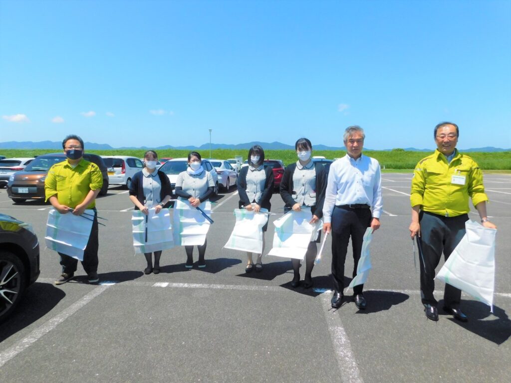 「ハートフルしまね」(島根県公共土木施設ボランティア)の一環として出雲空港ターミナル周辺の歩道ゴミ拾いを行いました。