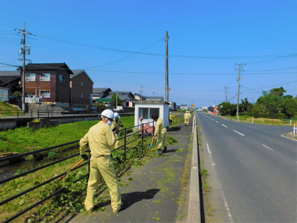 「ハートフルしまね」の活動として、県道243号(出雲空港線)の歩道や路肩の草刈りを延べ400mに渡り行いました。出雲空港線は通学路のため草刈りをおこなうことで、通学中の児童の姿が見えやすくなり防犯にも役立っております。
