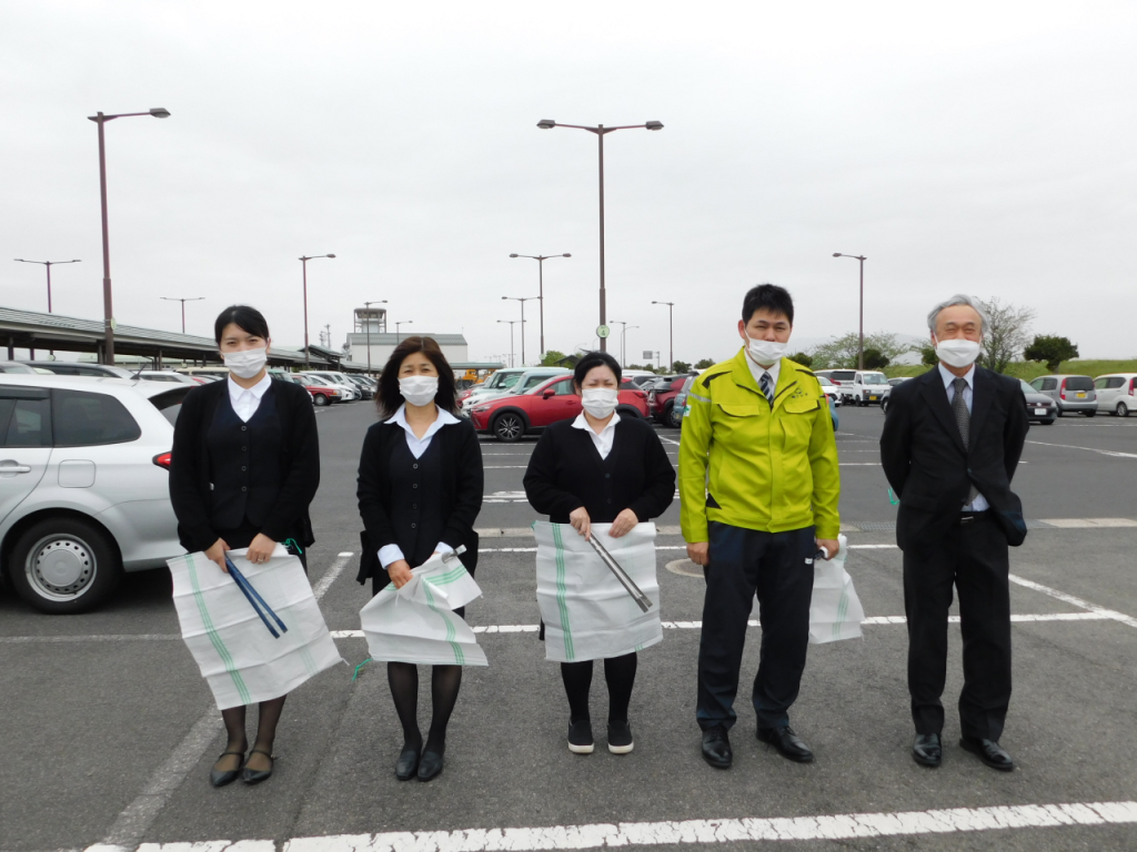 「ハートフルしまね」(島根県公共土木施設ボランティア)の一環として出雲空港ターミナル周辺の歩道ゴミ拾いを行いました。