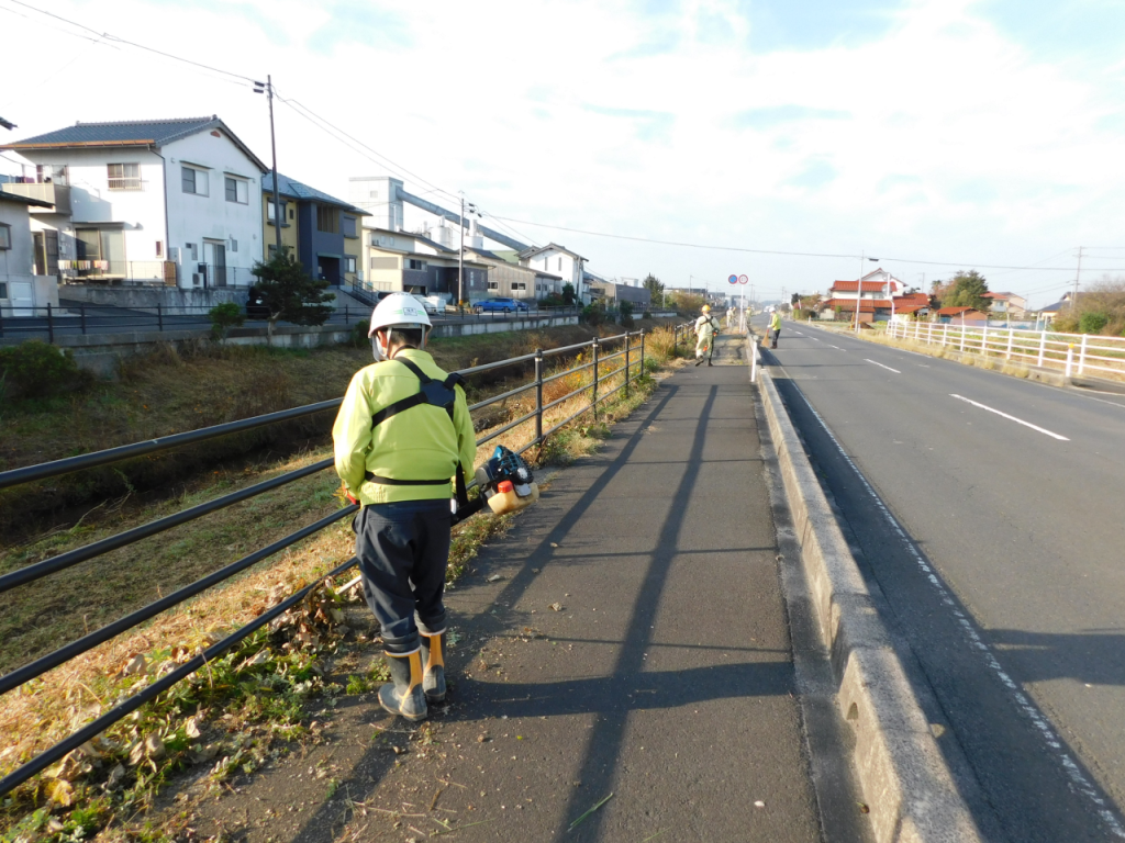出雲空港線は通学路のため草刈りをおこなうことで、通学中の児童の姿が見えやすくなり防犯にも役立っております。