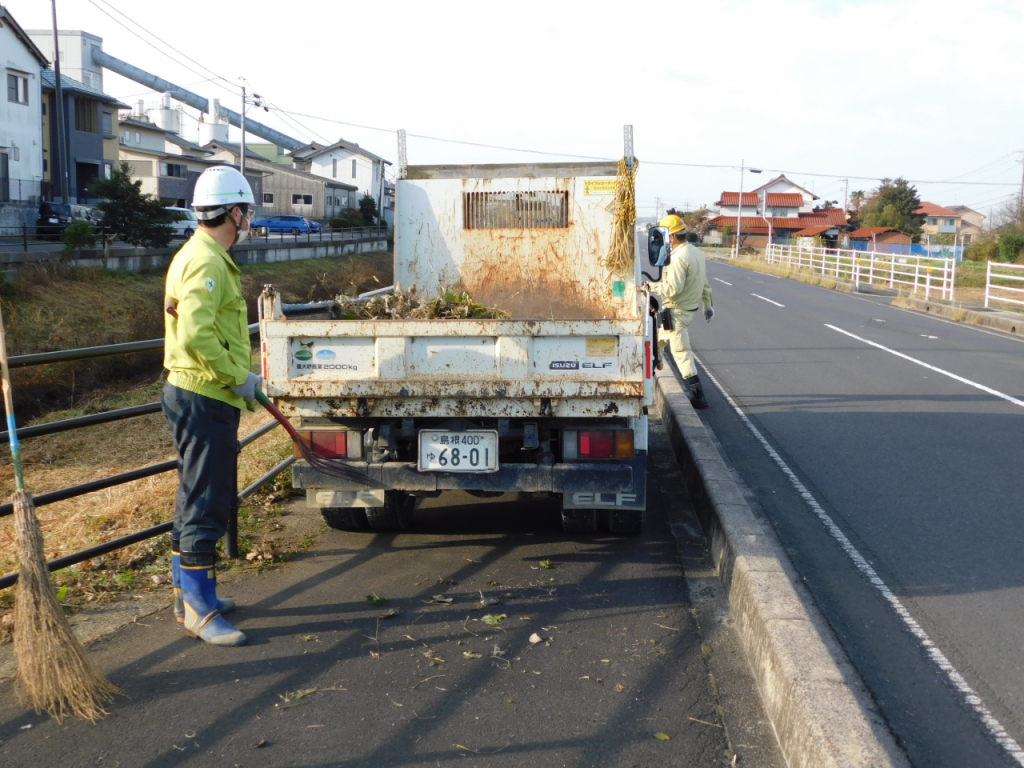 「ハートフルしまね」の活動として、県道243号(出雲空港線)の歩道や路肩の草刈りを延べ700mに渡り行いました。