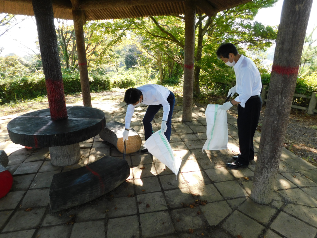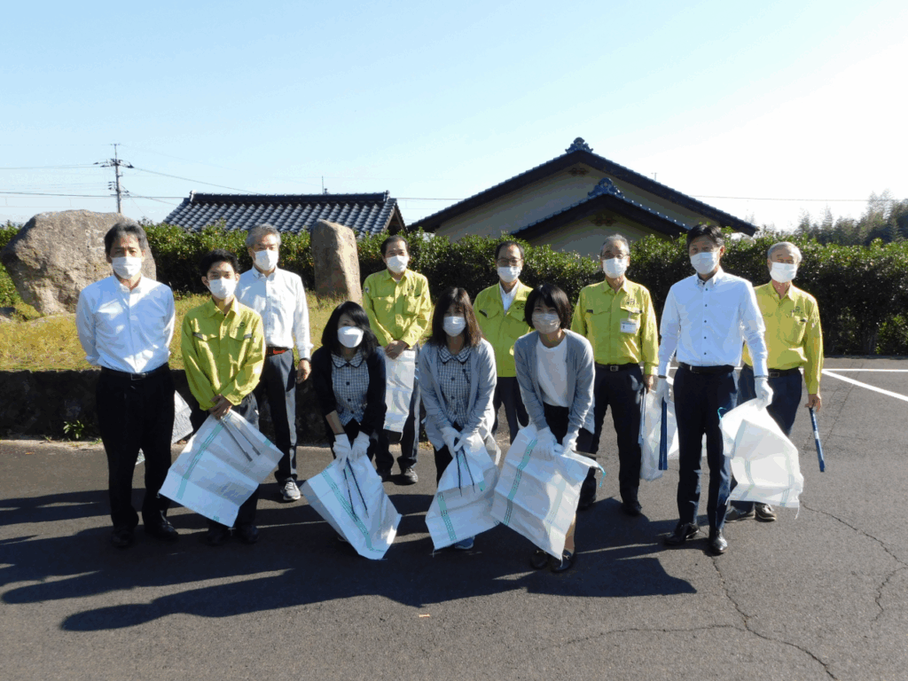 令和4年10月1日、当社の社員12名で地域貢献活動として斐川公園のゴミ拾いをおこないました。