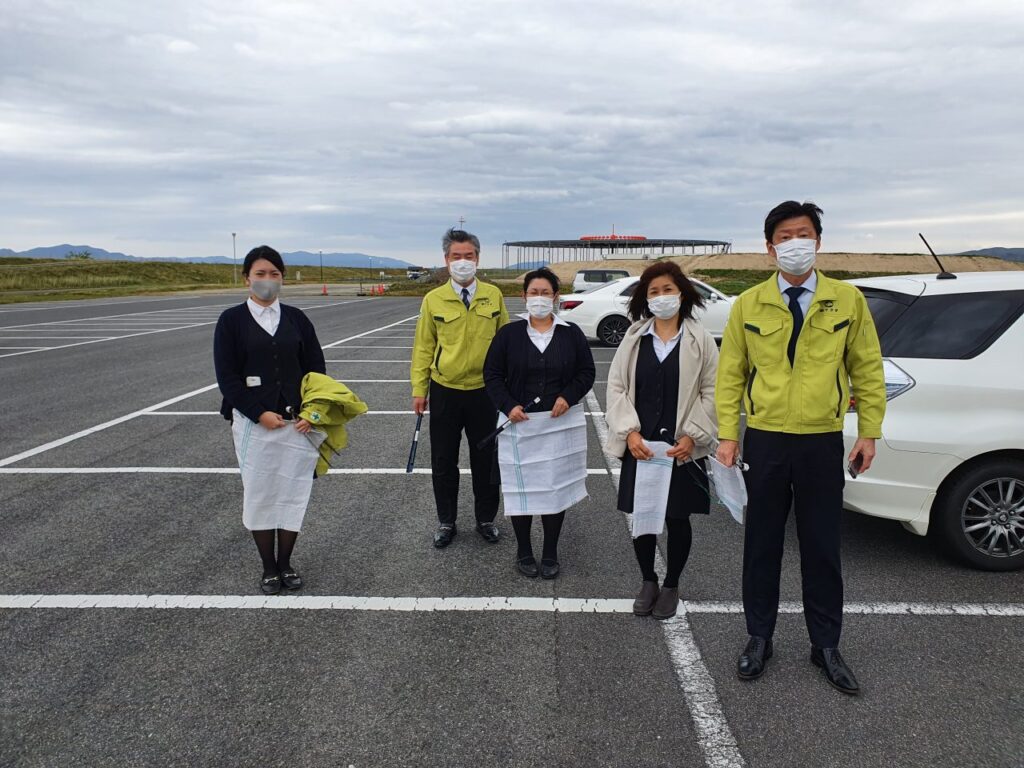 「ハートフルしまね」(島根県公共土木施設ボランティア)の一環として出雲空港ターミナル周辺の歩道ゴミ拾いを行いました。