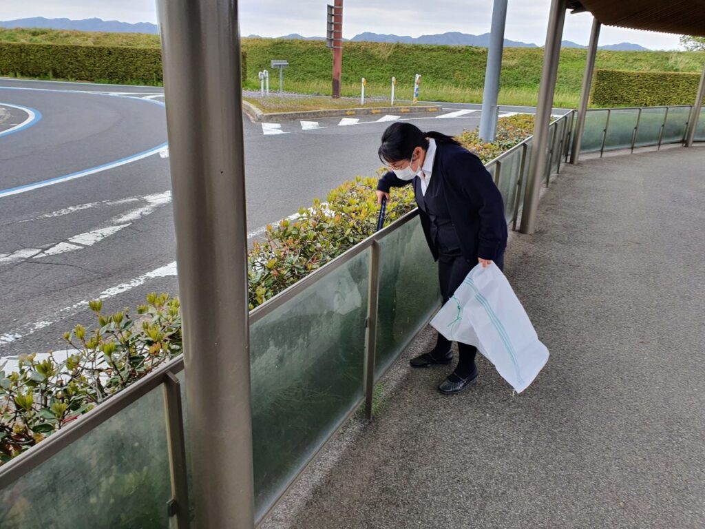 出雲空港ターミナル周辺の歩道(通路)ゴミ拾い