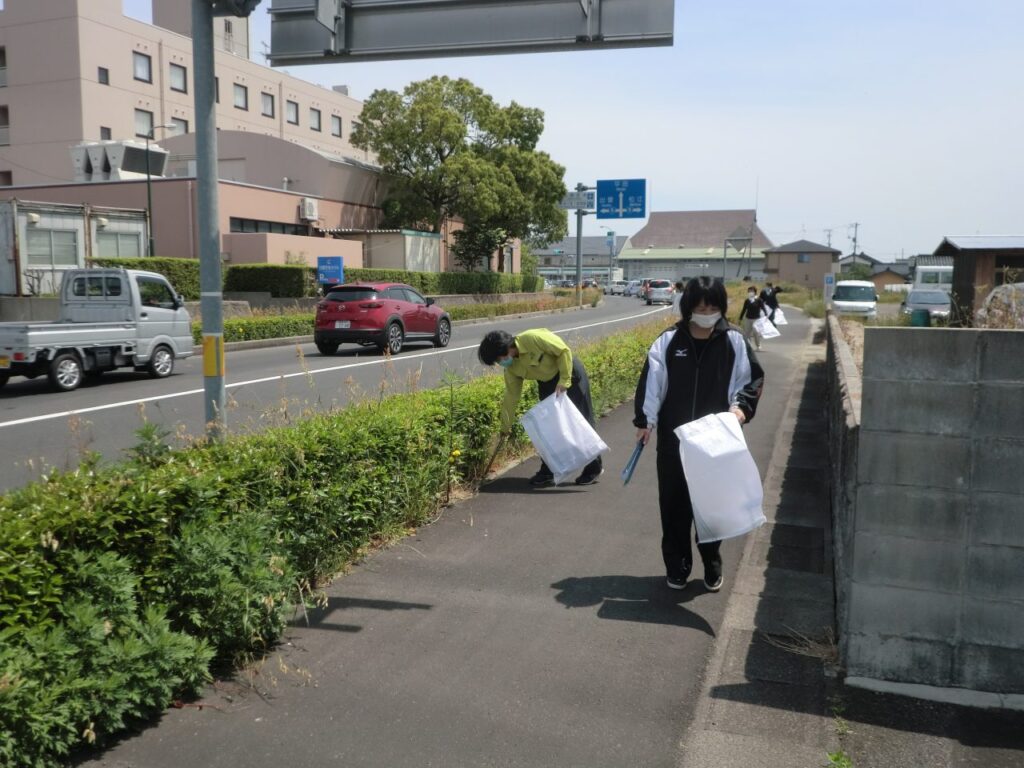 また、「出雲市美化サポートクラブ」の一環として市道新川中央線(国道9号~美幸町交差点)の路肩ゴミ拾いを行いました。