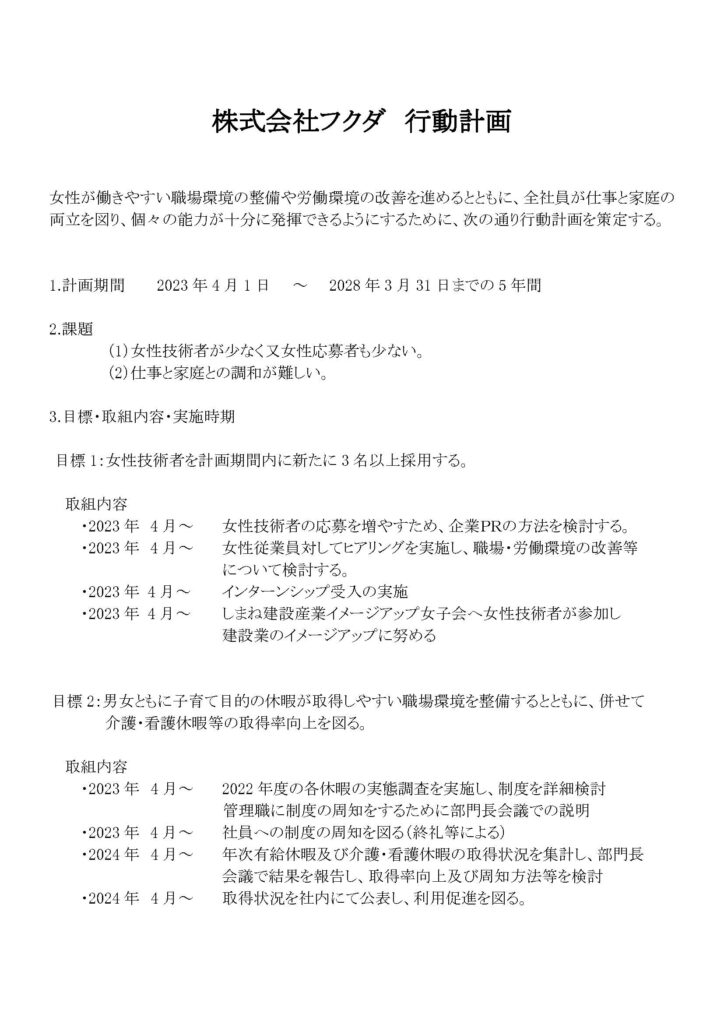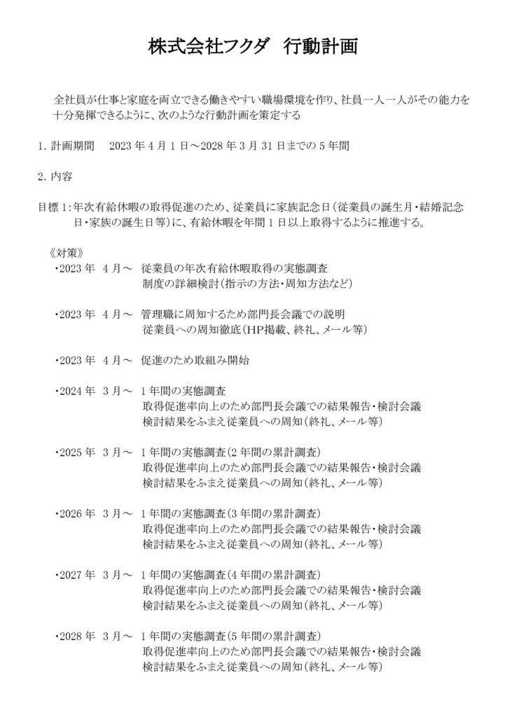 株式会社フクダは、次世代育成支援対策推進法並びに女性の職業生活における活躍の推進に関する法律に基づく「一般事業主行動計画」を策定いたしました。