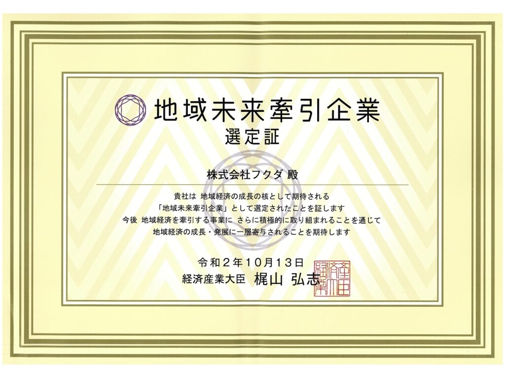 2020年10月13日(火)、弊社は「地域未来牽引企業」に選定され、経済産業大臣 梶山弘志様より選定証を頂きました。