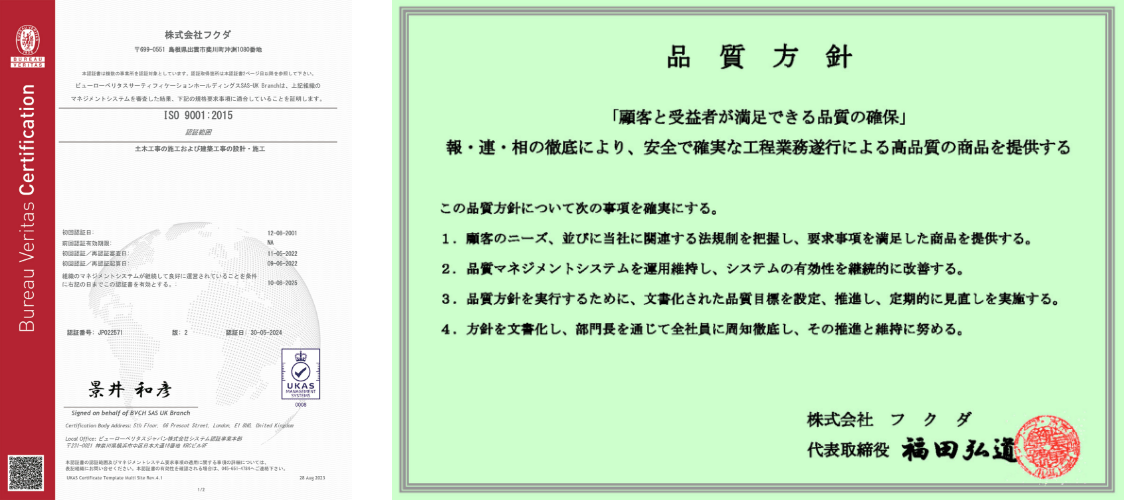 令和7年7月16日、弊社は国土交通省中国地方整備局発注工事で過去2ヶ年度に完成した直轄土木工事の実績を3件以上有し、かつその対象工事の平均点が80点以上を達成したとして、国土交通省中国地方整備局から令和7年度工事成績優秀企業の認定を受けました。