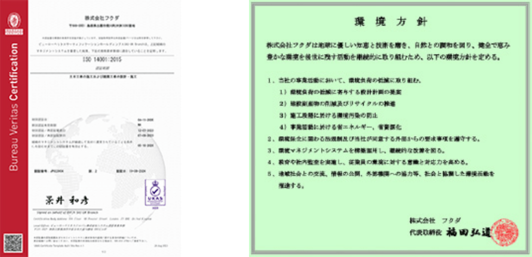 地球環境にやさしい企業を創るため国際規格ISO14001を2005年(平成17年)11月に取得いたしました。