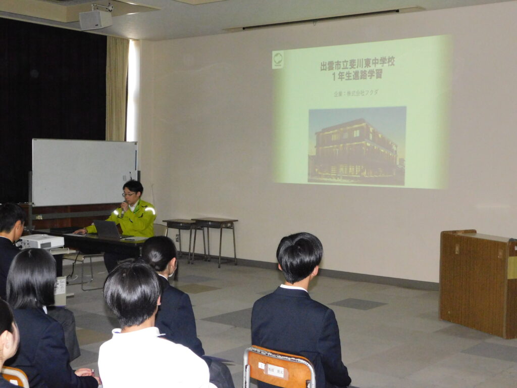 令和8年3月、斐川東中学校において実施された出前授業に、弊社建築部の社員が講師として参加いたしました。
