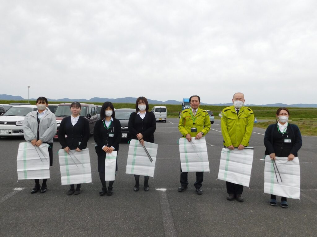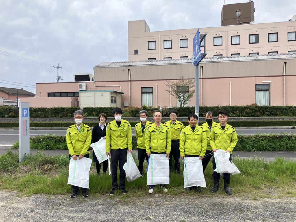 「ハートフルしまね」(島根県公共土木施設ボランティア)の一環として出雲空港ターミナル周辺の歩道ゴミ拾いを行いました。