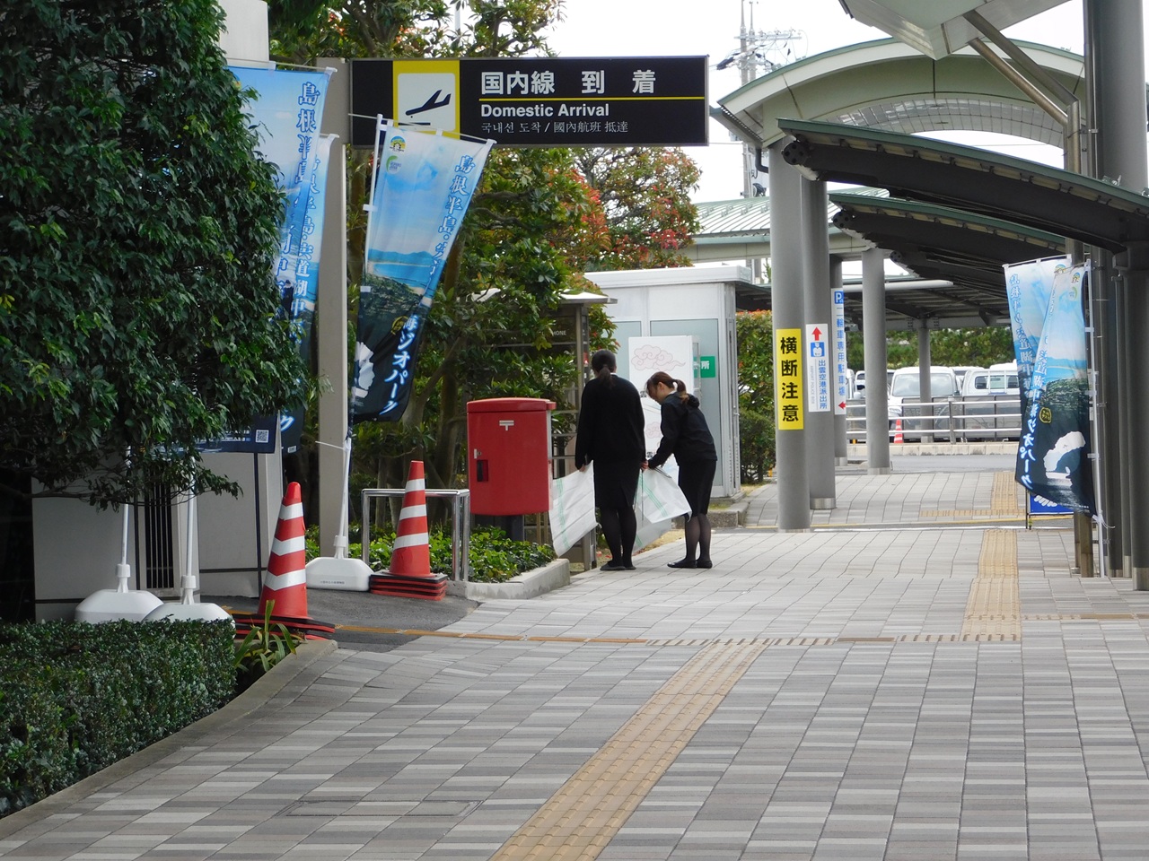 出雲空港ターミナル周辺の歩道(通路)ゴミ拾い