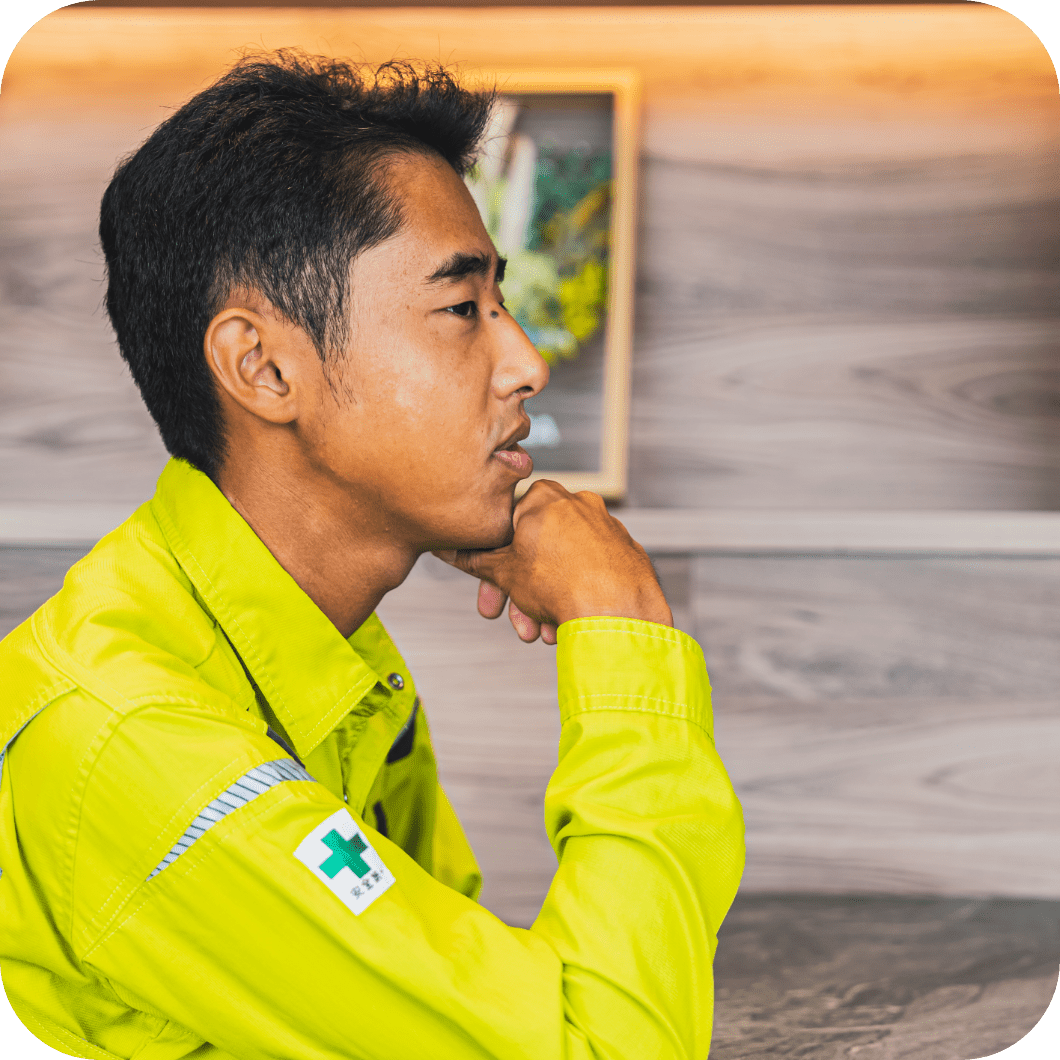 コロナ禍で思うように就職先が見つからない中、地元で長く働ける場所を探していました。大学では文系分野を専攻していましたが、文理に関係なく活躍できる建設業に惹かれました。特に、自分の手で大きな現場を動かすダイナミックさに魅力を感じ、それを実現できる会社を選びました。専門知識がなくても、先輩方が丁寧に教えてくれる環境があり、挑戦を通して成長できると感じています。文系出身の私でも力を発揮できる職場だと確信し、入社を決意しました。