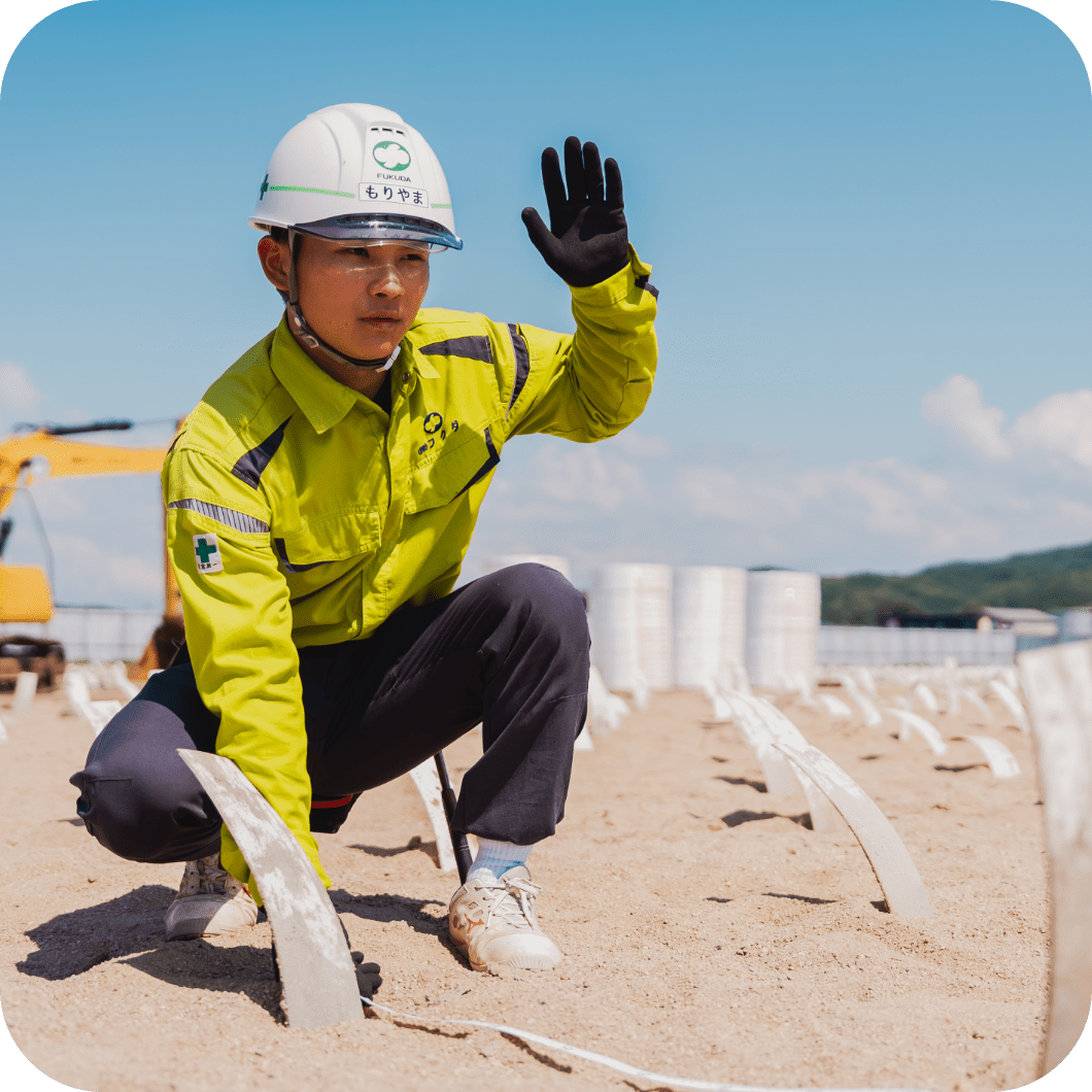 1級施工管理技士の資格取得に挑戦し、現場の理解をより深めることが目標です。そのために日々の業務を通じて知識を蓄え、現場で必要となる機械の名称や役割を覚え、慌てず対応できる準備を整えています。資格取得と実務経験を重ね、現場で頼られる存在になりたいと考えています。