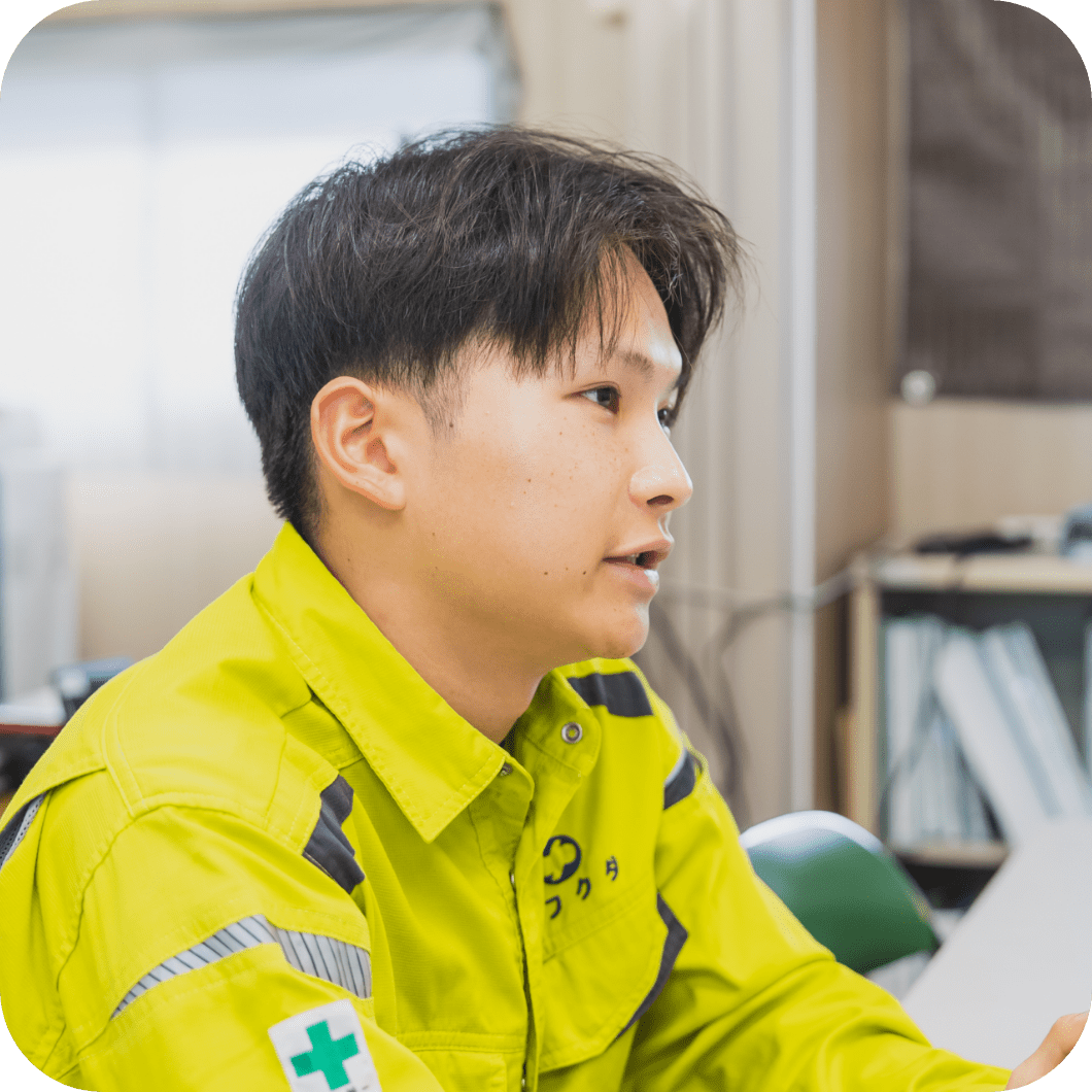 幼い頃から建設機械や重機に触れる機会が多く、建設業への興味は自然と芽生えていました。特に親の影響が大きく、その経験が進路選択にも影響しました。工業系の専門学校で学んだ知識や技術を活かせる場を探す中で、地域に密着した建設業に魅力を感じ、この会社への入社を決意。地元に根差し、地域の生活基盤を支える仕事に関われる点が、自分の価値観や将来像と一致していると感じています。