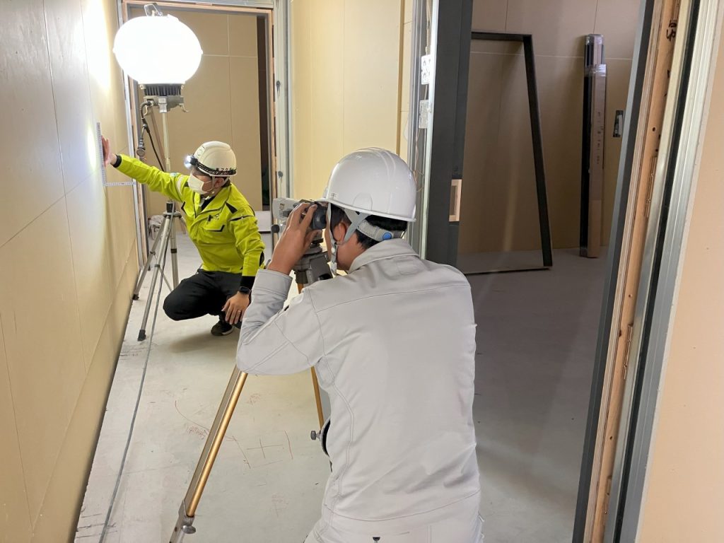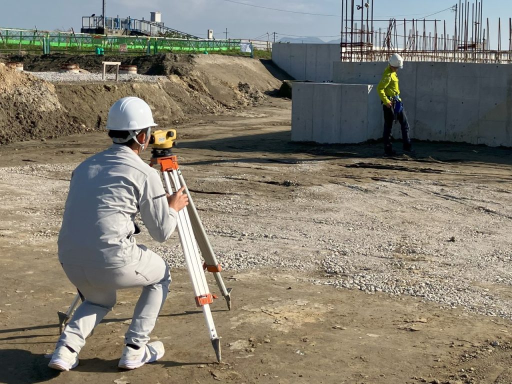 それぞれの現場にて工事概要の説明を行い、積算やコンクリートの数量計算に挑戦していただきました。その後、現場案内や測量などを実際に体験していただきました。