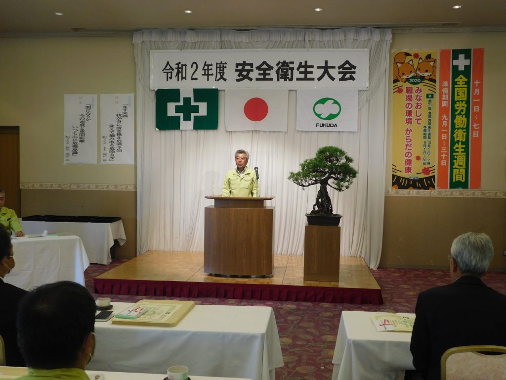 令和2年9月29日(火)、出雲空港ホテルにて「令和2年度フクダグループ安全衛生大会」を開催しました。本年は新型コロナウイルスの影響により規模を縮小し感染防止対策を行ったうえで50名程で行いました。