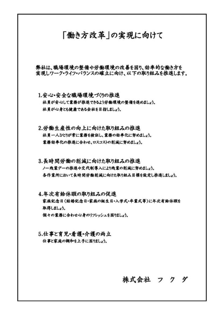 「働き方改革」の実現に向けた取り組みを制定しました。